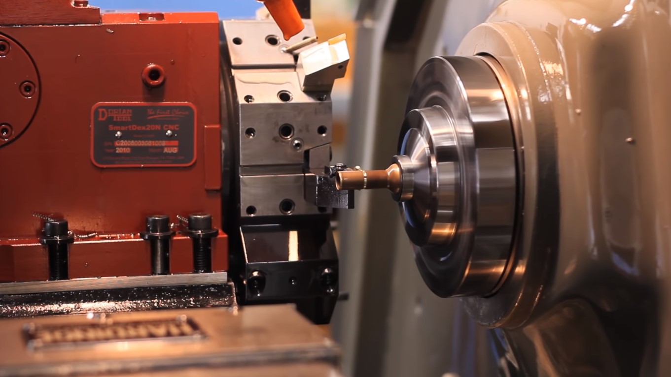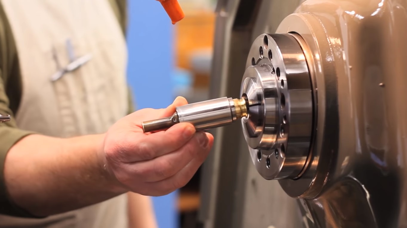 The final sized brass is placed into the Body Insert Bushing, which is then colleted into the CNC Lathe.